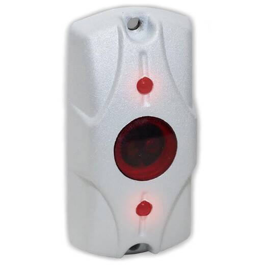 Работает на принципе регистрации отраженного кодированного инфракрасного сигнала. Двухцветная подсветка из двух светодиодов сигнализирует о срабатывании и позволяет быстро найти кнопку открывания замка даже при отсутствии освещения дверной площадки.