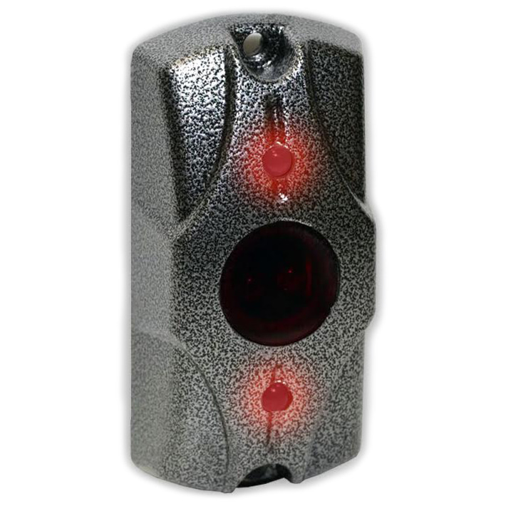 Работает на принципе регистрации отраженного кодированного инфракрасного сигнала. Двухцветная подсветка из двух светодиодов сигнализирует о срабатывании и позволяет быстро найти кнопку открывания замка даже при отсутствии освещения дверной площадки.