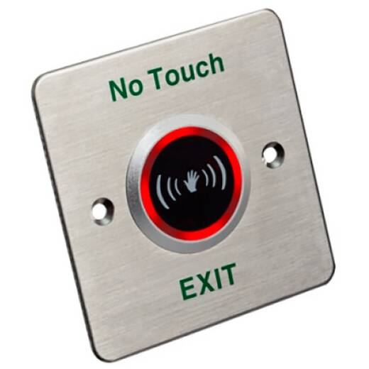 Гаджеты DS-K7P03 – бесконтактная кнопка выхода с LED-индикатором статуса, отображающим ожидание/рабочий режим (зеленый/красный).