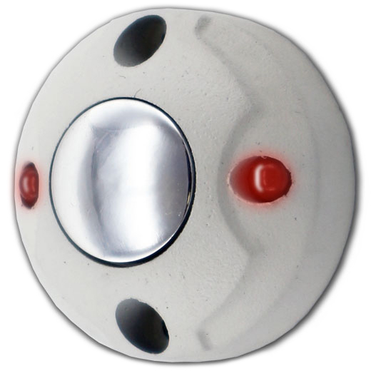Кнопка отлита из цинкового сплава и имеет антивандальную конструкцию. Подсветка из двух светодиодов позволяет найти кнопку в полной темноте. При смене полярности питания цвет подсветки меняется с зеленого на красный.