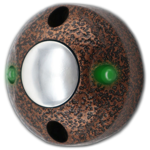 Кнопка отлита из цинкового сплава и имеет антивандальную конструкцию. Подсветка из двух светодиодов позволяет найти кнопку в полной темноте. При смене полярности питания цвет подсветки меняется с зеленого на красный.