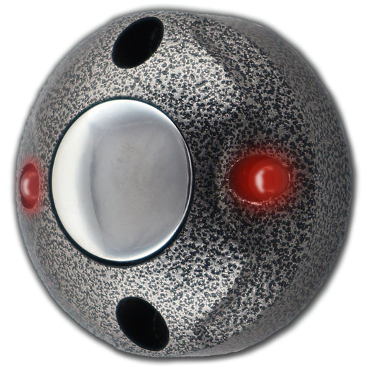 Кнопка отлита из цинкового сплава и имеет антивандальную конструкцию. Подсветка из двух светодиодов позволяет найти кнопку в полной темноте. При смене полярности питания цвет подсветки меняется с зеленого на красный.
