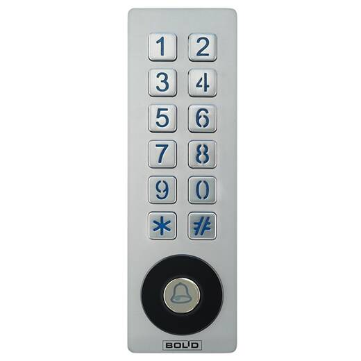 - для работы в автономном режиме предусмотрены встроенная память карт и паролей, реле для управления замком и сиреной, контакты для подключения датчика двери и кнопки "Выход", дверного звонка;
