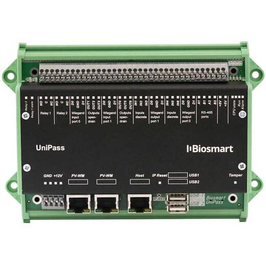 UniPass – контроллер для работы в составе сетевой системы контроля и управления доступом СКУД BioSmart. Позволяет организовать пропускной режим по венам ладони и RFID картам при помощи считывателей BioSmart PV-WM. Контроллер позволяет управлять замком, турникетом, другими исполнительными устройствами.