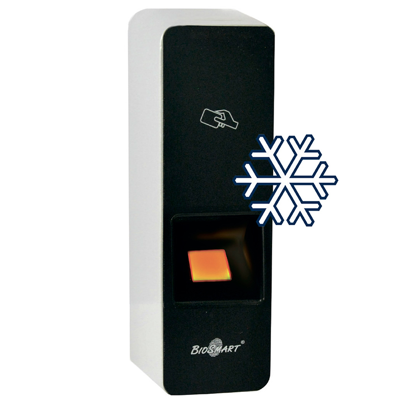 BioSmart 5M-E-EM – контроллер биометрический для идентификации пользователей по отпечаткам пальцев или RFID картам. Позволяет управлять замком, турникетом (в одну сторону), другими исполнительными устройствами. Отличительной особенностью контроллера является возможность работы при отрицательных температурах. Контроллер оснащен емкостным сканером отпечатков пальцев, позволяющим обеспечить защиту от муляжей. Внутренние элементы контроллера покрыты лаком для обеспечения защиты от коррозии и конденсата в условиях уличного применения. Сканер отпечатков пальцев оборудован специальной схемой подогрева обеспечивающей комфортное сканирование отпечатков пальцев при температурах до -40°С.