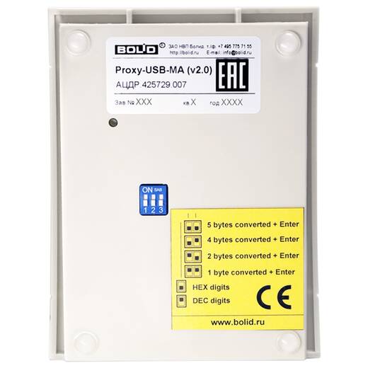 PROXY-USB-МА – настольный бесконтактный считыватель для систем контроля и управления доступом. Считывание кода и передача его на компьютер осуществляется по USB порт. Благодаря тому, что считыватель представляет собой USB HID-совместимое устройство, он не требует установки драйверов. Код карты передаётся в 8-ми различных форматах. Работает с двумя типами идентификаторов: EM-Marine и Mifare.