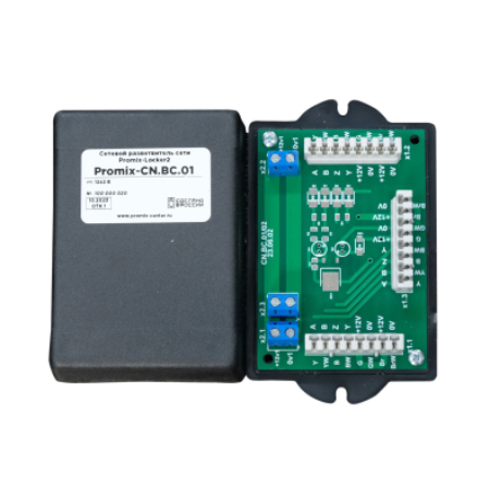 Promix-CN.BC.01 – сетевой разветвитель предназначен для упрощения монтажа линий локальной сети за счет исключения скруток проводников при ветвлении линии для подключения периферийных контроллеров в составе локальной сети Promix-Link.