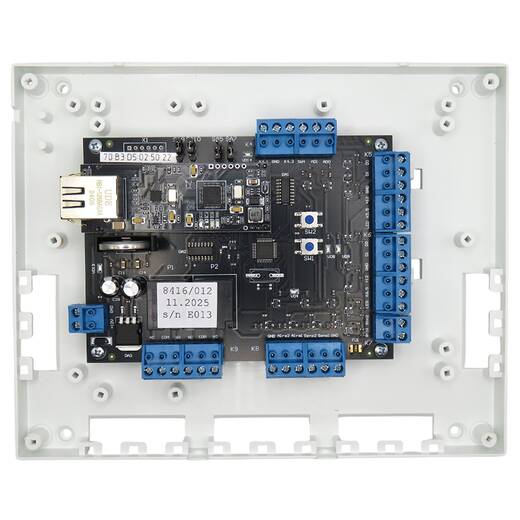 Имеет порт Ethernet 10/100 Мбит/с с типовой розеткой RJ-45, который и обеспечивает внешний интерфейс связи контроллера с системой. Порт RS-485 отсутствует.