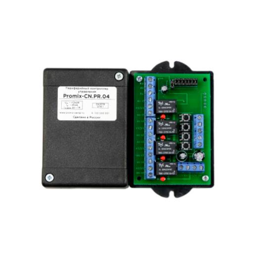 Promix-CN.PR.04 – периферийный контроллер управления предназначен для построения распределенных сетевых систем группового управления (СГУ) электромеханическими/электромагнитными замками либо другими исполнительными устройствами и используется для ограничения доступа в шкафы-локеры раздевалок, банковские ячейки, ячейки хранения багажа и т.п. Контроллер может применяться для дистанционного управления различными механизмами (шлагбаумами, вентиляторами, осветителями площадок и т.п.). Контроллер обслуживает информацию с 4 датчиков положения дверей или механизмов.