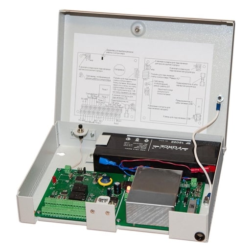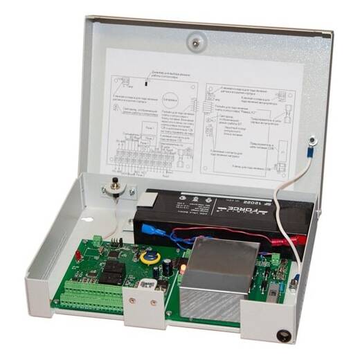 Контроллер представляет собой печатную плату с электронными компонентами, размещенную в металлическом корпусе. На плате размещены разъемы для подключения магистралей связи, разъемы питания и светодиодные индикаторы.