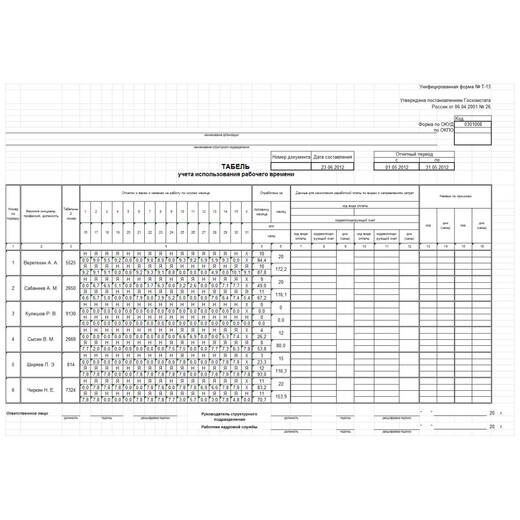 - заполнение формы Т-13 данными происходит на стороне СКУД, при этом сохраняются все возможности «SIGUR» по формированию данного документа, в том числе можно посчитать наработку «по факту» либо «по графику», использовать рабочие графики любой периодичности от 1 до 31 дня;
