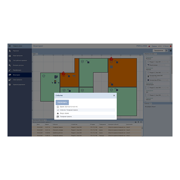 - мониторинг состояния и управление устройствами ОПС "Болид" в интерфейсе системы контроля доступа PERCo-Web;