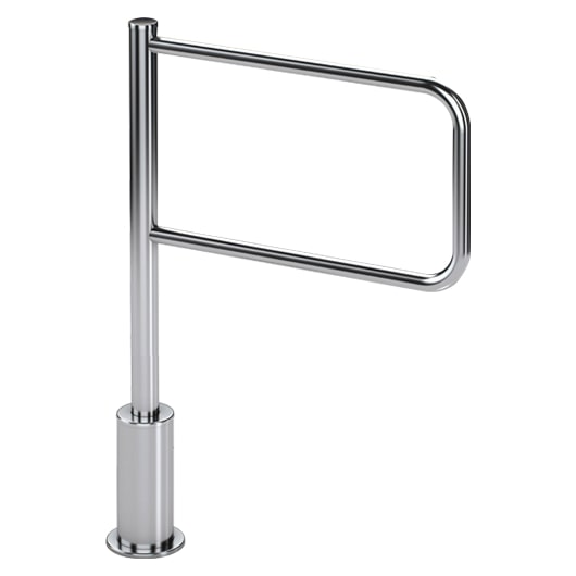 Створка калитки крепится к стойке при помощи установочных винтов. Стойка вращается относительно неподвижного основания, прикрепленного к полу. Крепление к полу скрывает крышка основания.
