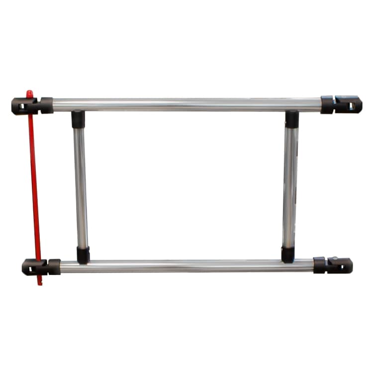 Поручни ограждения изготовлены из хромированной трубы, которые крепятся к вертикальным стойкам при помощи стальных шарниров с одной стороны, и специального запирающего элемента с другой. Стальные шарниры черного цвета прикручиваются к вертикальным стойкам.