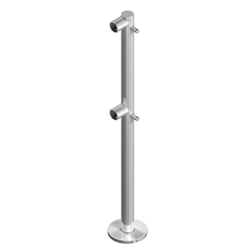 OMA-02.566.BL – двухсторонняя (угловая) стойка ограждения КЛАССИКА с 2 муфтами под поручни и 2 шарнирами для ТВИСТЕРа.