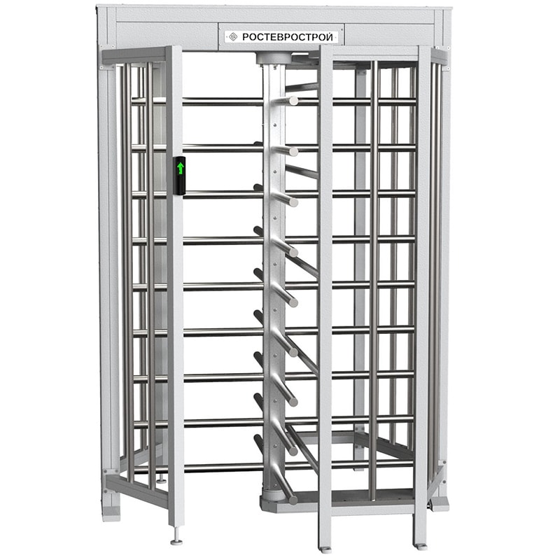 Полноростовой роторный 4-х лопастной турникет предназначен для эксплуатации как внутри помещений, так и на улице под навесом. Турникет уличного исполнения крашеный покрывается цинкосодержащим защитным слоем с последующей покраской, а также дополнительно производится двойное покрытие плат электроники лаком, применена система электроподогрева механизма турникета. Класс защиты IP43. В него установлена новая электроника, которая обеспечивает стыковку с любой СКУД без дополнительного адаптера, а также обеспечивает режим работы antipassback как при работе от СКУД, так и при работе от пульта охранника.