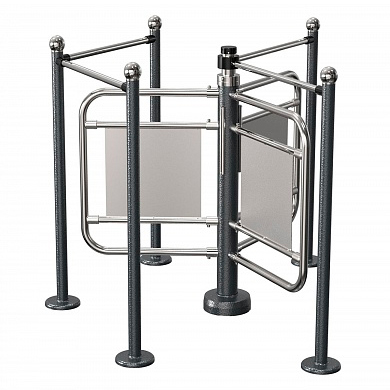 Роторный турникет предназначен для эксплуатации внутри помещений. В него установлена новая электроника, которая обеспечивает стыковку с любой системой контроля и управления доступом без дополнительного адаптера. Турникет управляются с пульта дистанционного управления и обеспечивает пропуск в любом из двух направлений как по одному человеку, так и группы людей.