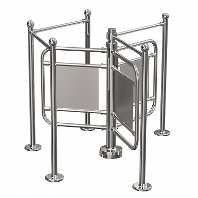 Роторный турникет в хромированном исполнении предназначен для эксплуатации внутри помещений. В него установлена новая электроника, которая обеспечивает стыковку с любой системой контроля и управления доступом без дополнительного адаптера. Турникет управляются с пульта дистанционного управления и обеспечивает пропуск в любом из двух направлений как по одному человеку, так и группы людей.