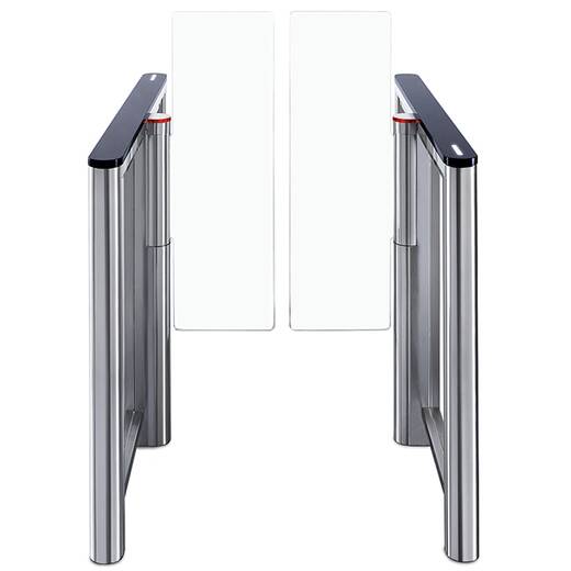 Увеличенная ширина прохода позволяет организовать проезд маломобильных групп населения, а также дополнительный выход в случае чрезвычайной ситуации. При проходе створки турникета распахиваются.