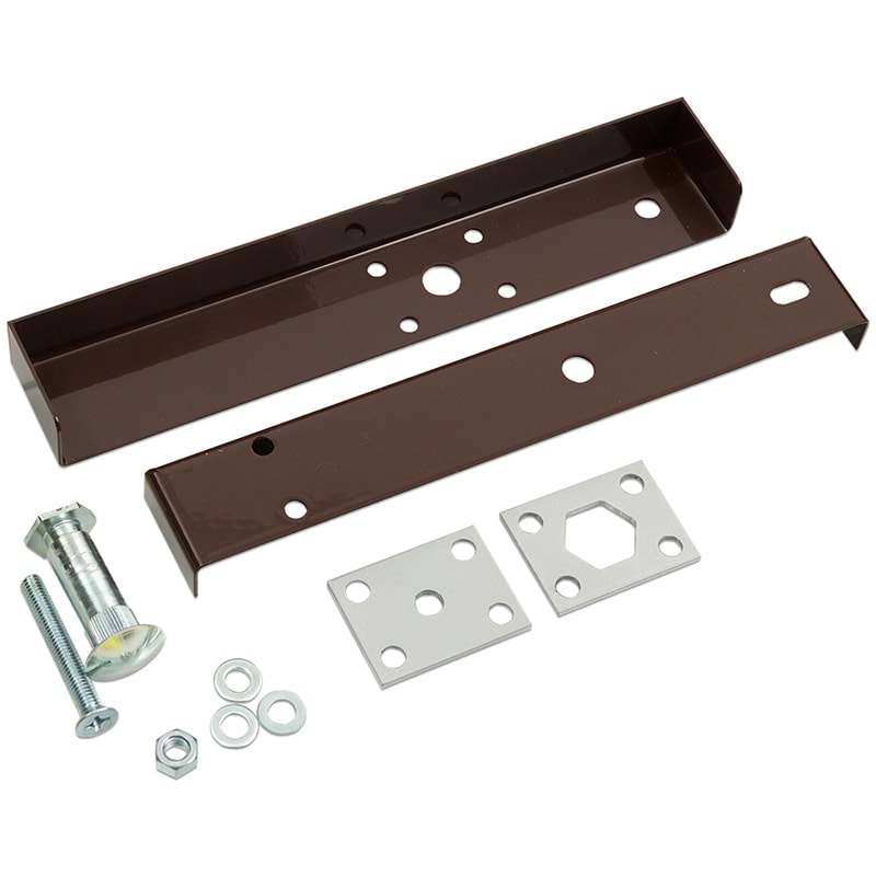 Комплект смещения состоит из втулки резьбовой, болта М10, кожуха, кожуха якоря, фиксатора, упора и комплекта крепежа. Коричневый цвет.
