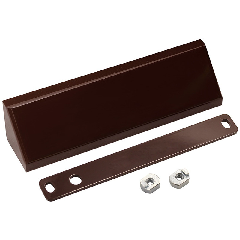 MK 150 – монтажный комплект для крепления корпуса замка ALM-150P на уголке с декоративным кожухом в цвет замка. Применяется для дверей, открывающихся наружу.
