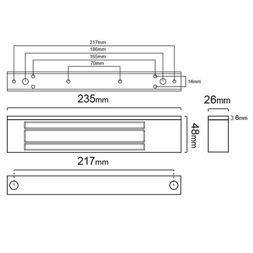 - габаритные размеры 235×48×26 мм;