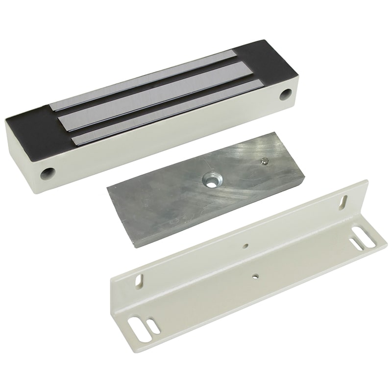 ML-295K с уголком (белый) – электромагнитный влагозащищенный замок IP67. Механический компенсатор эффекта остаточной намагниченности на якоре замка.