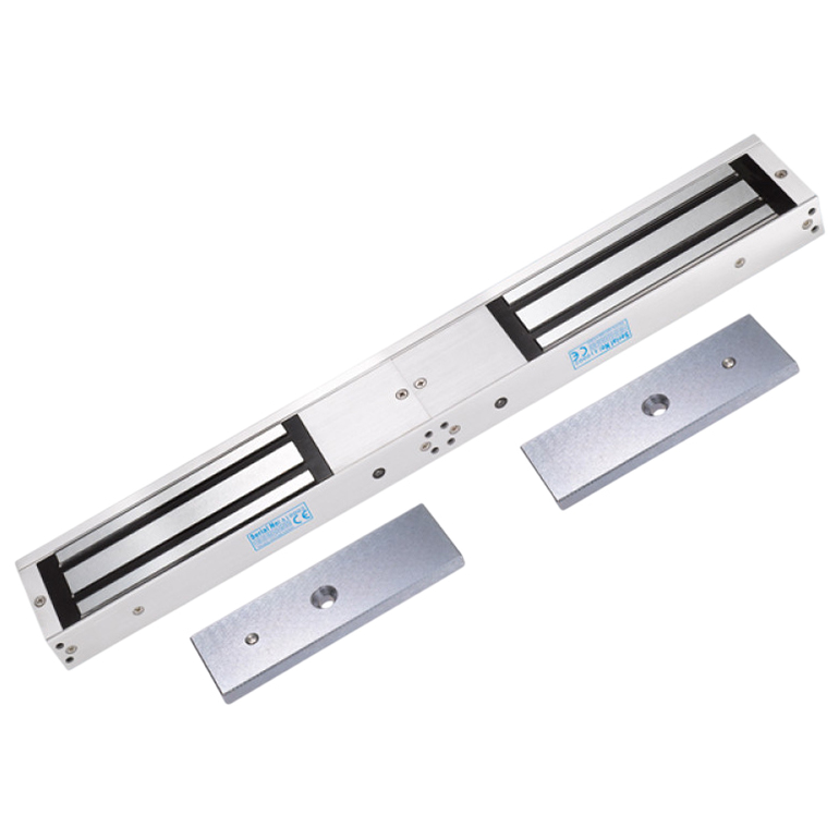TS-ML500DS – замок электромагнитный сдвоенный с датчиком состояния замка, сила удержания 500 кг. Предназначен для запирания двухстворчатых дверей с возможностью дистанционного открывания.