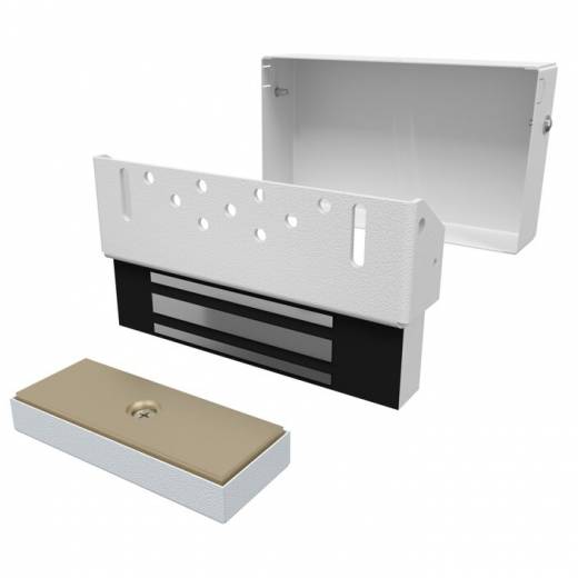 - в комплект входит корпус с электромагнитом, ответная металлическая пластина и кожух замка;