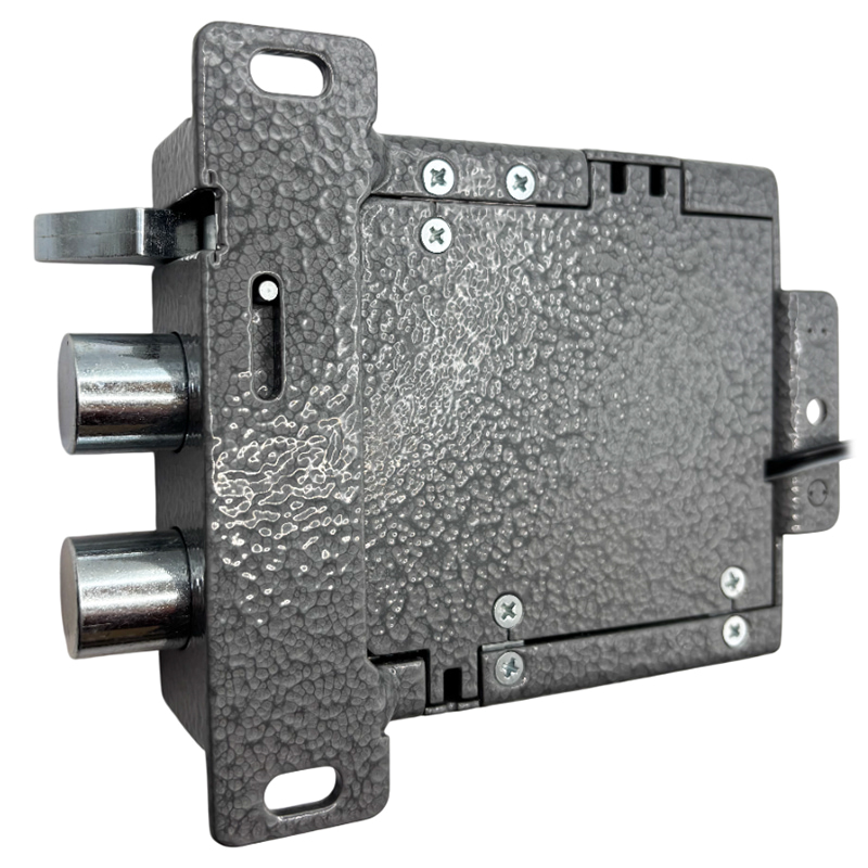 Используется при наличии блока бесперебойного питания. Отсутствие цилиндрового механизма значительно увеличивает секретность защелок и упрощает установку защелок на дверь.