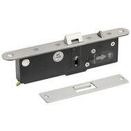 Замок предназначен для профильных алюминиевых и пластиковых дверей, где ограничена глубина установки, однако с успехом может применяться для металлических и деревянных дверей. Управление ригелем-защелкой: электрически, от ключа (при установке цилиндра), от ручки (при установке ручки). Ригель-задвижка поворотного типа управляется только от ключа. Ответная планка, цилиндр стандартного профиля и оковка ключевины поставляются отдельно.