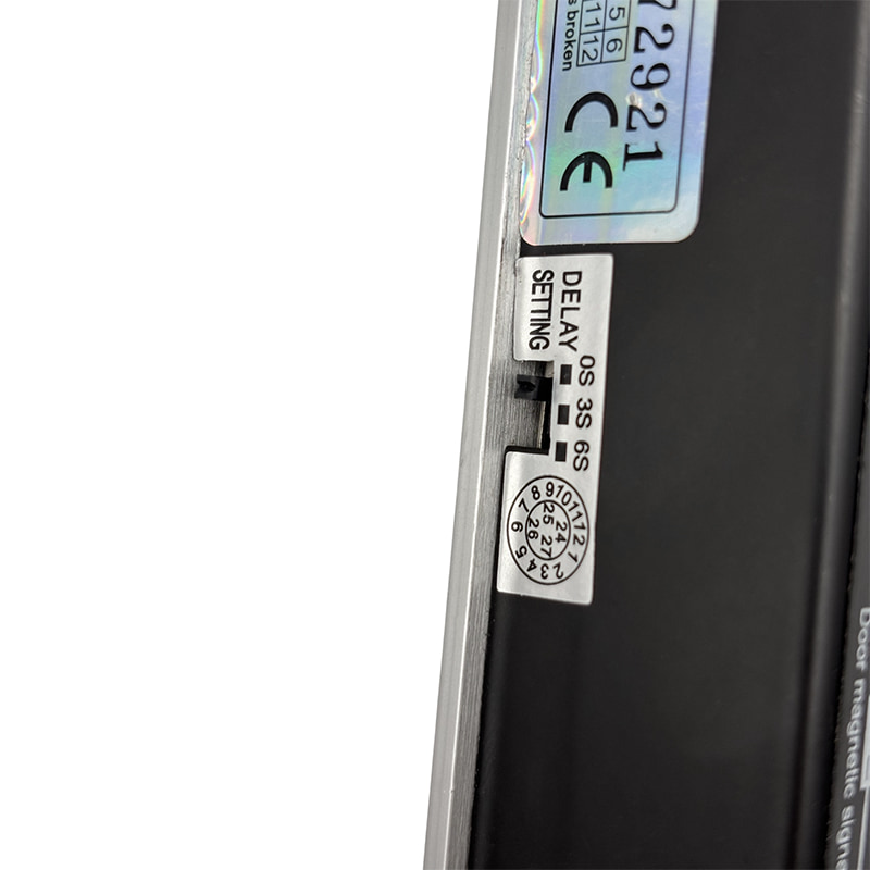 Замок HN-B161 оснащен таймером задержки запирания (0/3/6 сек) и магнитным датчиком, благодаря которому ригель выходит только после остановки двери в закрытом положении. Может использоваться для дверей, открывающихся внутрь, открывающихся наружу и маятниковых.