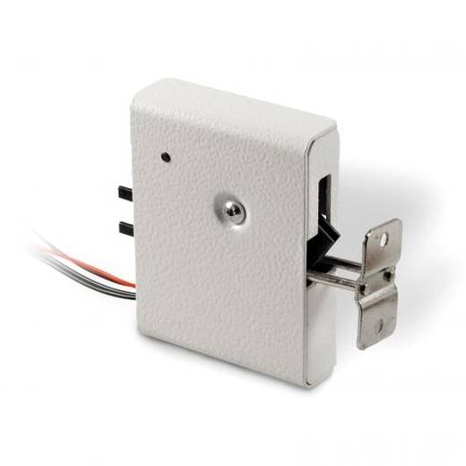 При подаче напряжения питания замок разблокирует дверь и встроенным толкателем выталкивает ее. Таким образом, открытая дверь сразу видна и нет необходимости устанавливать на дверь ручку.