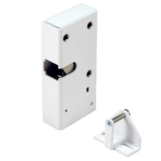 Замок устанавливается на внутренние поверхности шкафа перпендикулярно двери. Ответная часть (ригель) устанавливается на дверь.