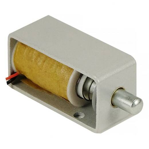 При подаче напряжения питания электромагнитным полем якорь втягивается в замок.
