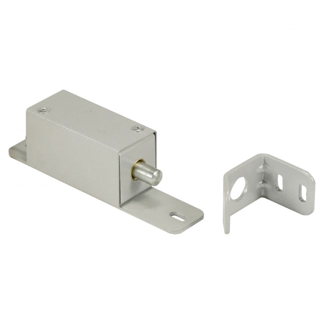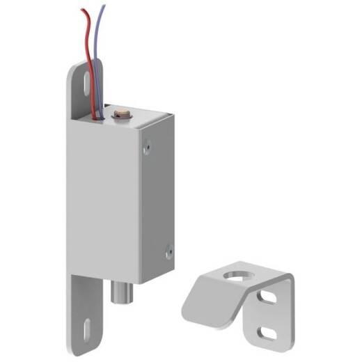 При закрытии двери ригель вжимает якорь замка и блокируется якорем в отверстии. При подаче напряжения питания электромагнитным полем якорь перемещается в противоположную сторону и выходит из отверстия ригеля, освобождая его.