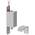 Замок серебристого цвета с крепежной пластиной, защитным кожухом, ригелем и возможностью аварийного открытия.