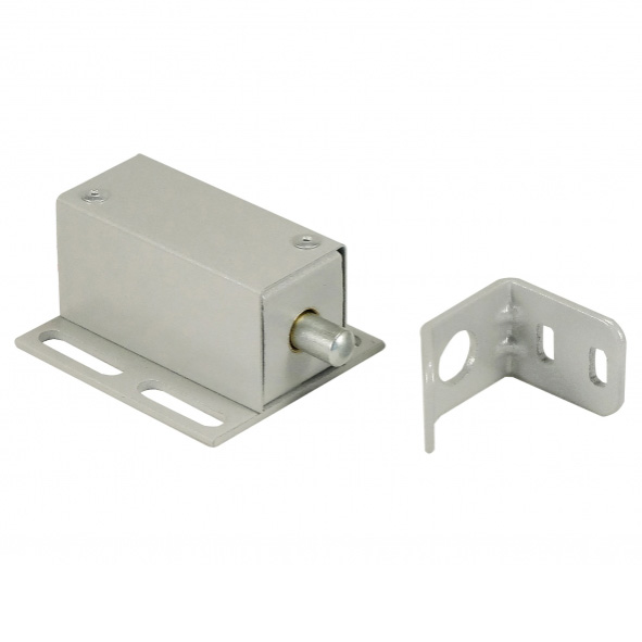При закрытии двери ригель вжимает якорь замка и блокируется якорем в отверстии. При подаче напряжения питания электромагнитным полем якорь перемещается в противоположную сторону и выходит из отверстия ригеля, освобождая его.