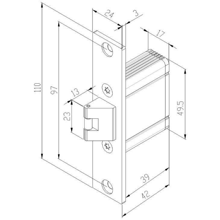 ST-SL120DL – ответная часть для совместной работы с электромеханическими защелками в составе систем контроля доступа с электронным управлением блокировкой дверей.