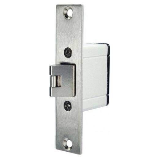 Ответная часть врезается в дверное полотно. Благодаря своему врезному монтажу комбинация из защелки с ответной частью не нарушает дизайн двери и прекрасно подходит для решений, когда уже эксплуатирующийся объект с дверями необходимо оборудовать системой контроля доступа с минимальными затратами и переделками конструкции дверей.