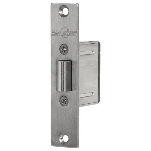 Ответная часть врезается в дверное полотно. Благодаря такому способу монтажа комбинация из защелки и ответной части не нарушает дизайн двери и прекрасно подходит для ситуаций, когда системой контроля доступа оснащается уже эксплуатирующийся объект, где двери снабжены механическими замками. Такое решение позволяет минимизировать затраты на СКУД и на конструктивную доработку дверей.
