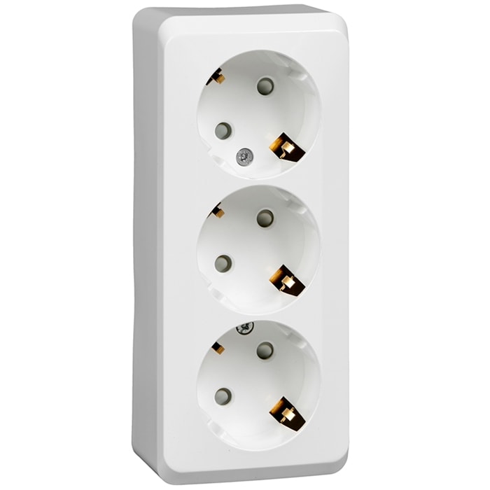 Гаджеты ЭТЮД О/У – тройная розетка с заземлением со шторками.