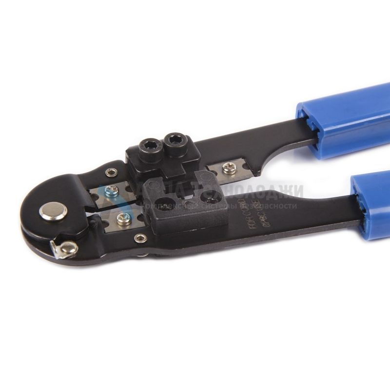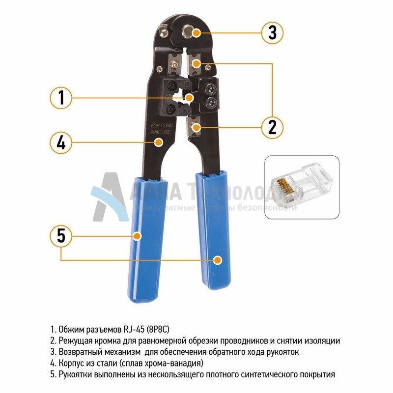 HT-210N (12-3451-4) – кримпер для обжима компьютерный, универсальный инструмент, предназначен для обжима разъемов RJ-45 (8P8C), а также для снятия изоляции и обрезки проводов.