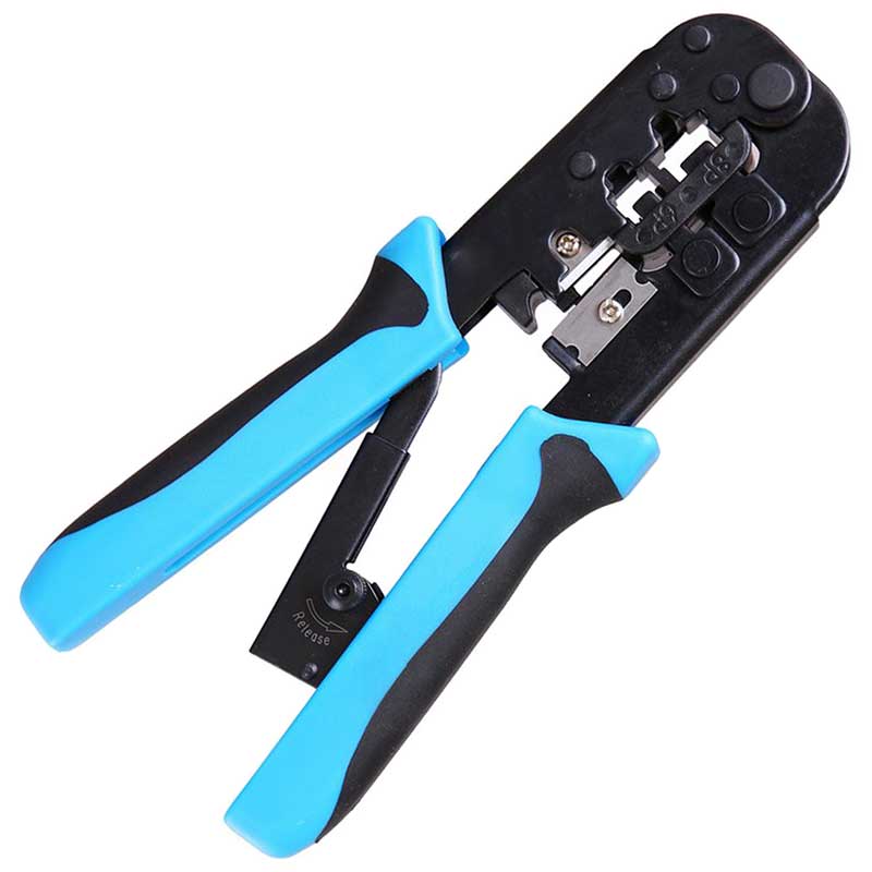 HT-568R (12-3432-6) – кримпер для обжима, универсальный инструмент, предназначен для обжима разъемов RJ-45 (8P8C), RJ-12 (6P6C), RJ-11 (6P4C и 6P2C) и RJ-10 (4P4C), а также для снятия изоляции и обрезки проводов.