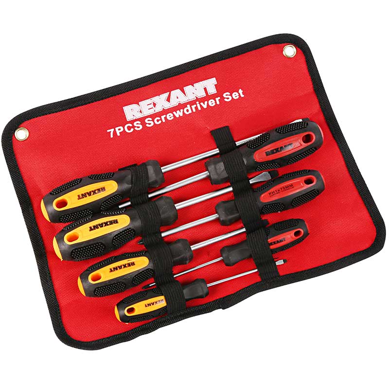 Набор отверток 7 предметов (12-4703) для выполнения монтажных и демонтажных работ с резьбовыми соединениями. Набор состоит из 7 отверток со шлицами SL и PH (крестовые и шлицевые), разных размеров.