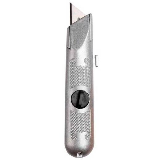 Нож с трапециевидным выдвижным лезвием (12-4908) для резки различных материалов: пластика, линолеума, кровельных материалов, гипсокартонных и гипсолитовых плит, бумаги, картона.