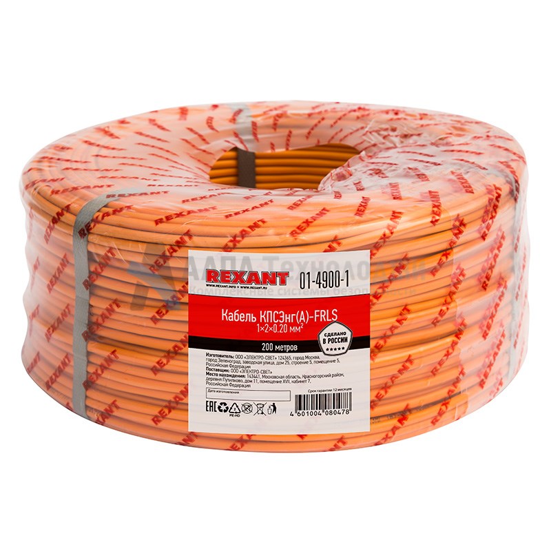 КПСЭнг(А)-FRLS 1х2х0.2 (01-4900-1) – огнестойкий кабель симметричной парной скрутки, не распространяющий горение при групповой прокладке, с пониженным дымо- и газовыделением.