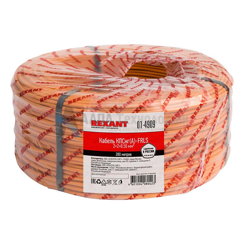 КПСнг(А)-FRLS 2х2х0.5 (01-4909) – огнестойкий кабель симметричной парной скрутки, не распространяющий горение при групповой прокладке, с пониженным дымо- и газовыделением.