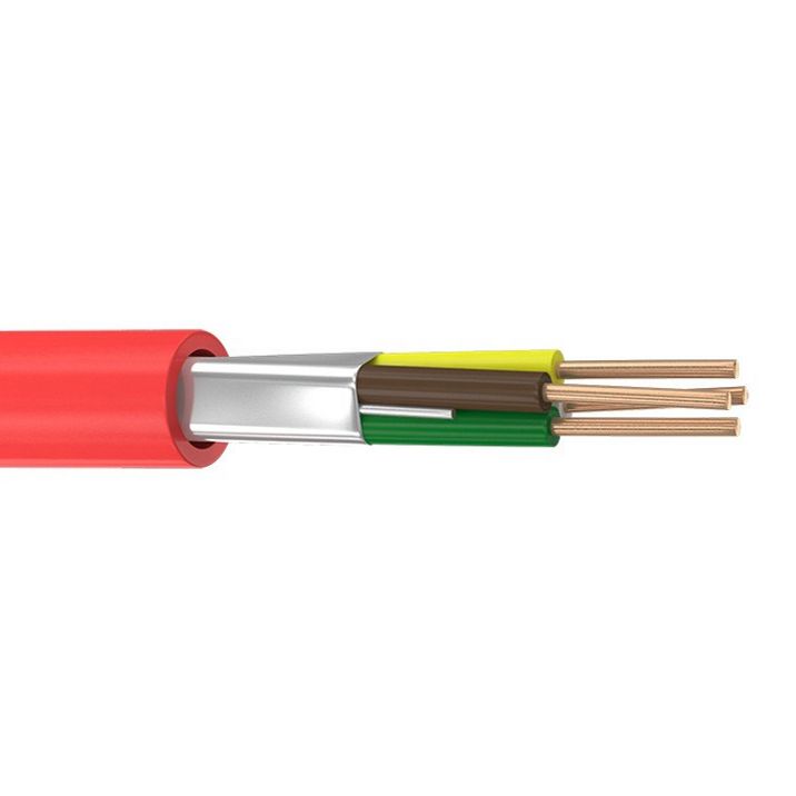 Имеет 4 однопроволочные токопроводящие жилы диаметром 0.5 мм. Индивидуальная изоляционная оболочка жил выполнена из ПВХ-пластиката отличительных цветов. Экранирование представлено алюмопластиковой лентой с контактной медной луженой проволокой, расположенной продольно. Внешняя оболочка – негорючий ПВХ-пластикат красного цвета.
