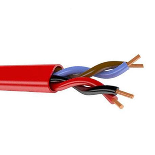 Имеет 4 скрученные попарно токопроводящие монолитные жилы из медной проволоки диаметром 0.4 мм. Индивидуальная изоляционная оболочка жил выполнена из ПВХ-пластиката отличительных цветов. Внешняя оболочка представлена негорючим ПВХ-пластикатом красного цвета.